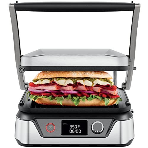 - 5-in-1 functionality allows grilling, panini pressing, sandwich making, and more